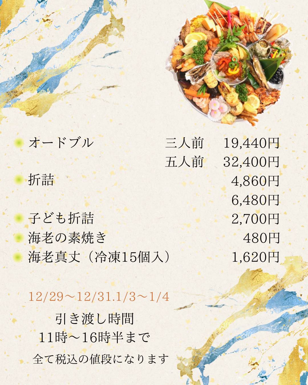 年末年始折詰・オードブル等の予約受付(11/1~12/25)